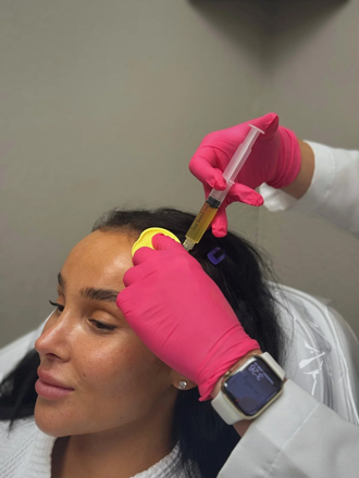 Growth factors are delivered directly to the scalp to support follicle health, density, and hair caliber where you need it most.