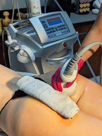 Targeted heat and suction help smooth dimples, increase circulation, and reduce the look of lumps and bumps while refining body contours.